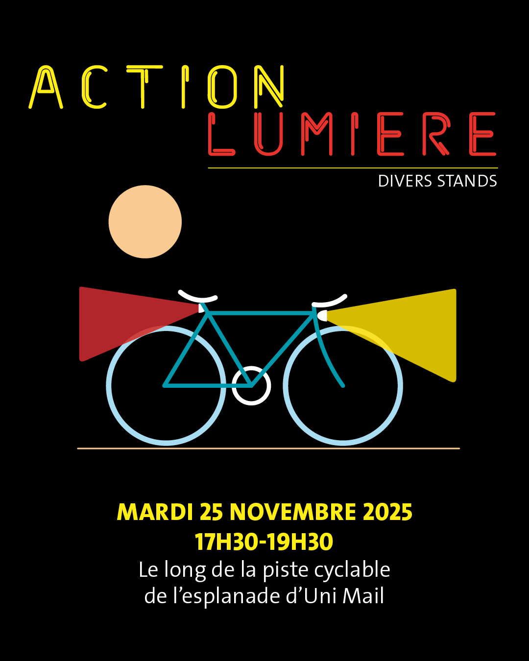 Le Secteur Durabilité, en collaboration avec Unicycle, vous donne rendez-vous pour une Action Lumière. À l’approche de l’hiver, lorsque les journées raccourcissent et que la visibilité devient un vrai enjeu, nous vous proposons un moment convivial pour rouler mieux, rouler éclairé.