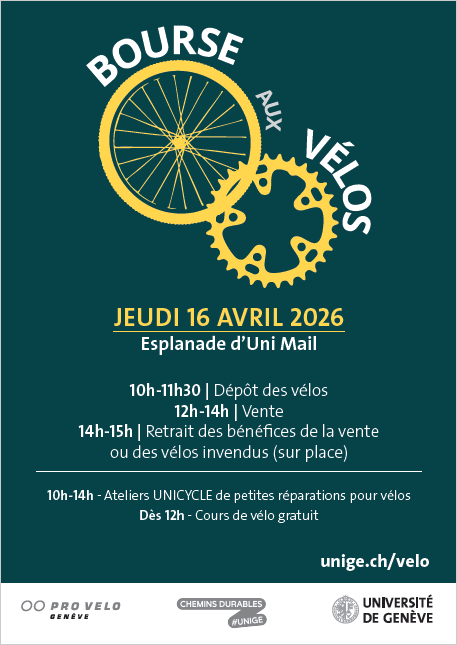 Deux bourses aux vélos par année sont organisées à l'UNIGE avec Pro Vélo Genève, au printemps et à l'automne.